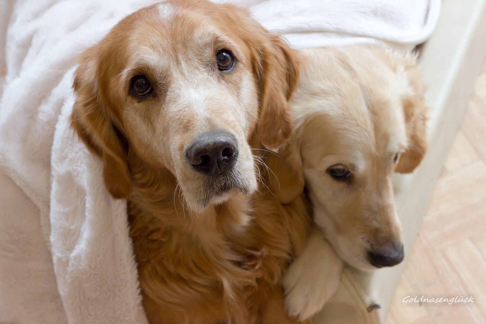 Sicherlich haben die beiden Goldstücke ihr(e) eigenes Bett, dass sie auch gerne benutzen. Und ich muss sagen so eine Kudde * ist äußerst bequem, so dass auch ich mich öfters mal zum kuscheln mit dazu lege.