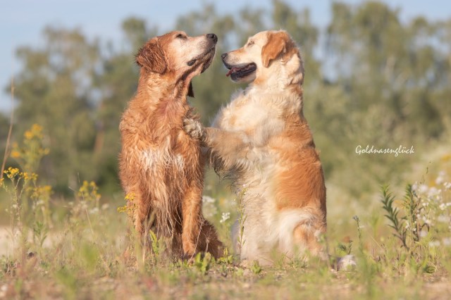 Ich bin einfach verliebt in diese Rasse. Schon als kleines Kind hatte ich immer wieder Kontakt zu einem Golden Retriever, aber auch zu anderen Rassen / Mischlingen. Aber der Goldi ist irgendwie hängen geblieben. So war es natürlich wunderbar, dass wir uns vor 7 Jahren als Familie für Loulou entschieden hatten. ❤