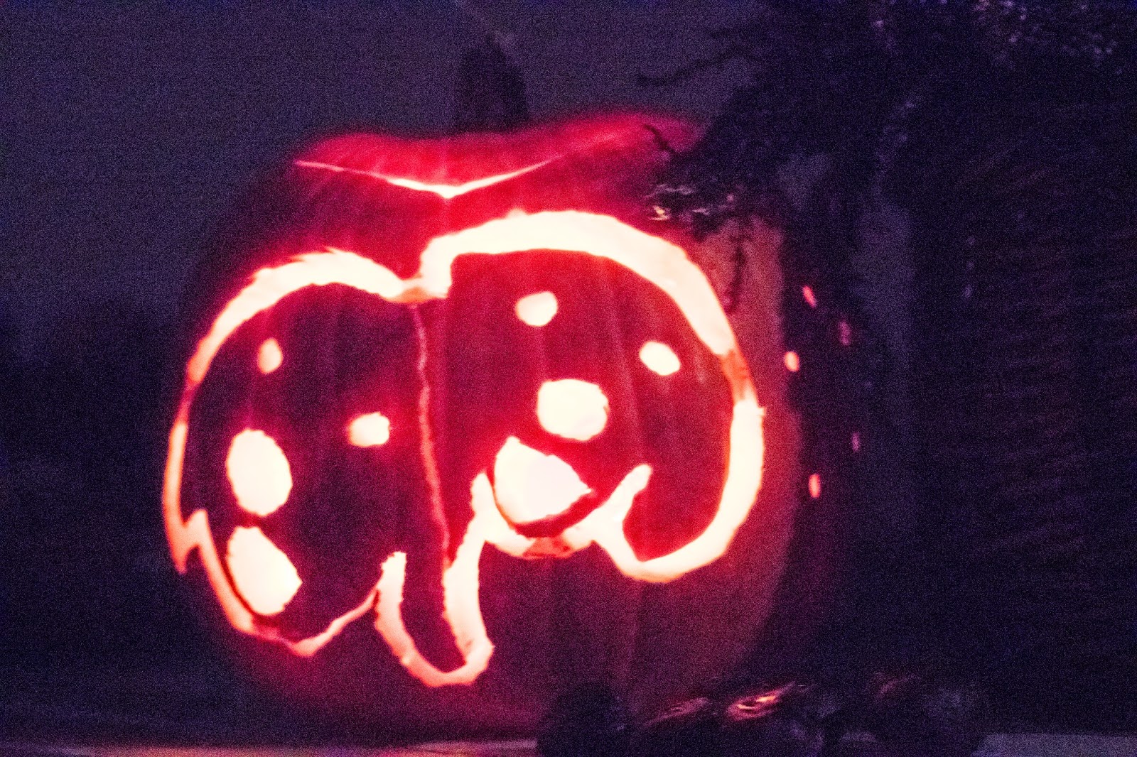 Nun noch Augen, Nase und Mund und fertig ist der Halloween-Hunde-Kürbis!